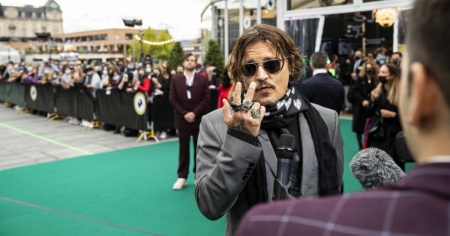 Depp si è presentato ai fan e ai giornalisti in abito grigio, con due sciarpe scure e occhiali da sole. Ha rilasciato un'intervista, e si è messo in posa - quasi imbarazzato - accarezzando più volte i capelli. Sorridente, si è tolto gli occhiali da sole su richiesta dei fotografi e ha fatto l'occhiolino.