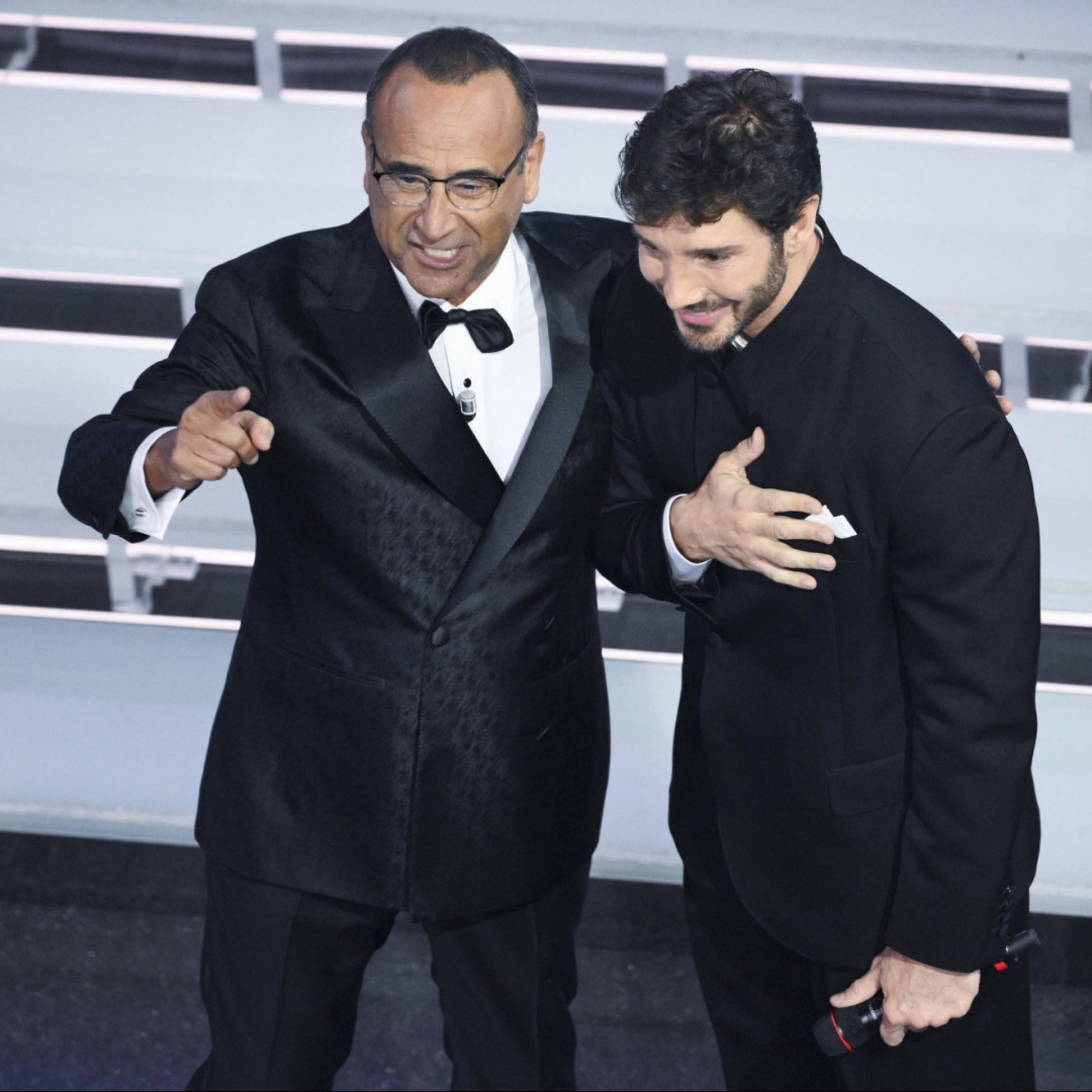 Il passaggio di testimone a De Martino - È un unicum nella storia del festival e della Rai l'investitura in diretta di Conti al successore. Sono trascorse da poco le 23 quando il direttore artistico scende in platea: «Ho un grande onore, per la prima volta accade a Sanremo. Posso annunciare ufficialmente che Stefano De Martino sarà il conduttore e il direttore artistico del prossimo festival», e prende per mano il presentatore di Affari Tuoi.