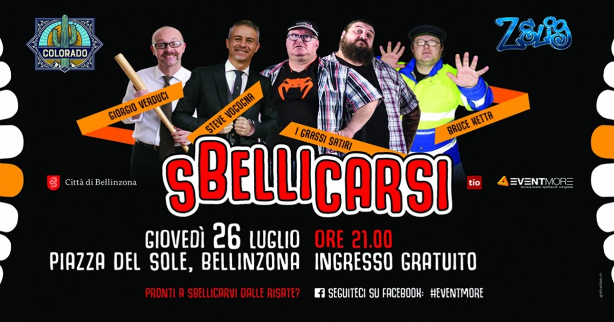 La serata comica SBELLICARSI! sarà supportata da un team di aziende e professionisti ticinesi tra cui EVENTMORE che si occuperà della gestione di tecnica e strutture e Promoter Melzani per i contatti con sponsor e istituzioni. Un progetto nato in collaborazione con la Città di Bellinzona.