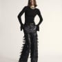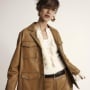 Pantaloni e gonne si animano di sottili frange sovrapposte, che creano movimento e ritmo, mentre blazer e giacche aviator definiscono silhouette strutturate, dal fascino intramontabile. Accanto alle superfici lisce e morbide della nappa, la stampa coccodrillo aggiunge una nota di preziosità, declinata su giacche corte e gonne midi dal taglio sartoriale.