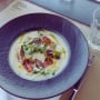 Il piatto in video: crema vegana di cavolfiore morbida e profonda, accompagnata da scalogno marinato, pomodori datterini confit