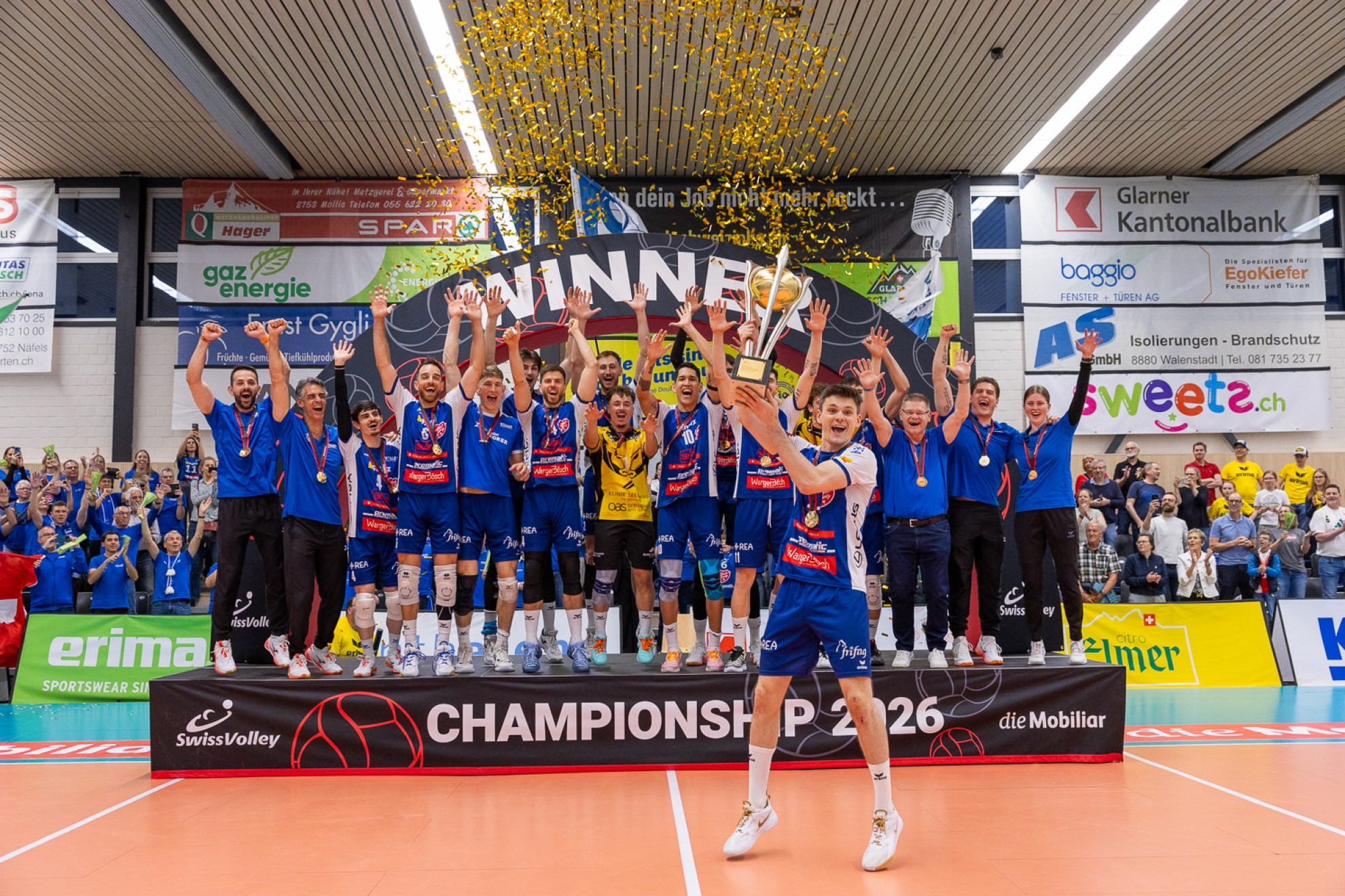 Damien SengstagVOLLEY - Volley Amriswil difende il suo titolo e diventa campione svizzero per la settima volta. All'inizio della terza partita della serie, nulla lasciava tuttavia presagire che Amriswil avrebbe alzato il trofeo di campione nel canton Glarona. Volley Näfels ha infatti iniziato l'incontro a tutto gas e ha vinto chiaramente il primo set. Successivamente, però, i turgoviesi sono riusciti a reagire e si sono imposti nel secondo e nel terzo set. Nel corso di un quarto set spettacolare, durante il quale entrambe le squadre sono riuscite a respingere diverse palle di set e di match, i glaronesi hanno dimostrato un po' più di resistenza e si sono imposti 33 a 31. Nel tie-break decisivo, invece Näfels è stato in vantaggio fino al cambio campo, ma alla fine è stato Volley Amriswil a imporsi 15 a 12.
