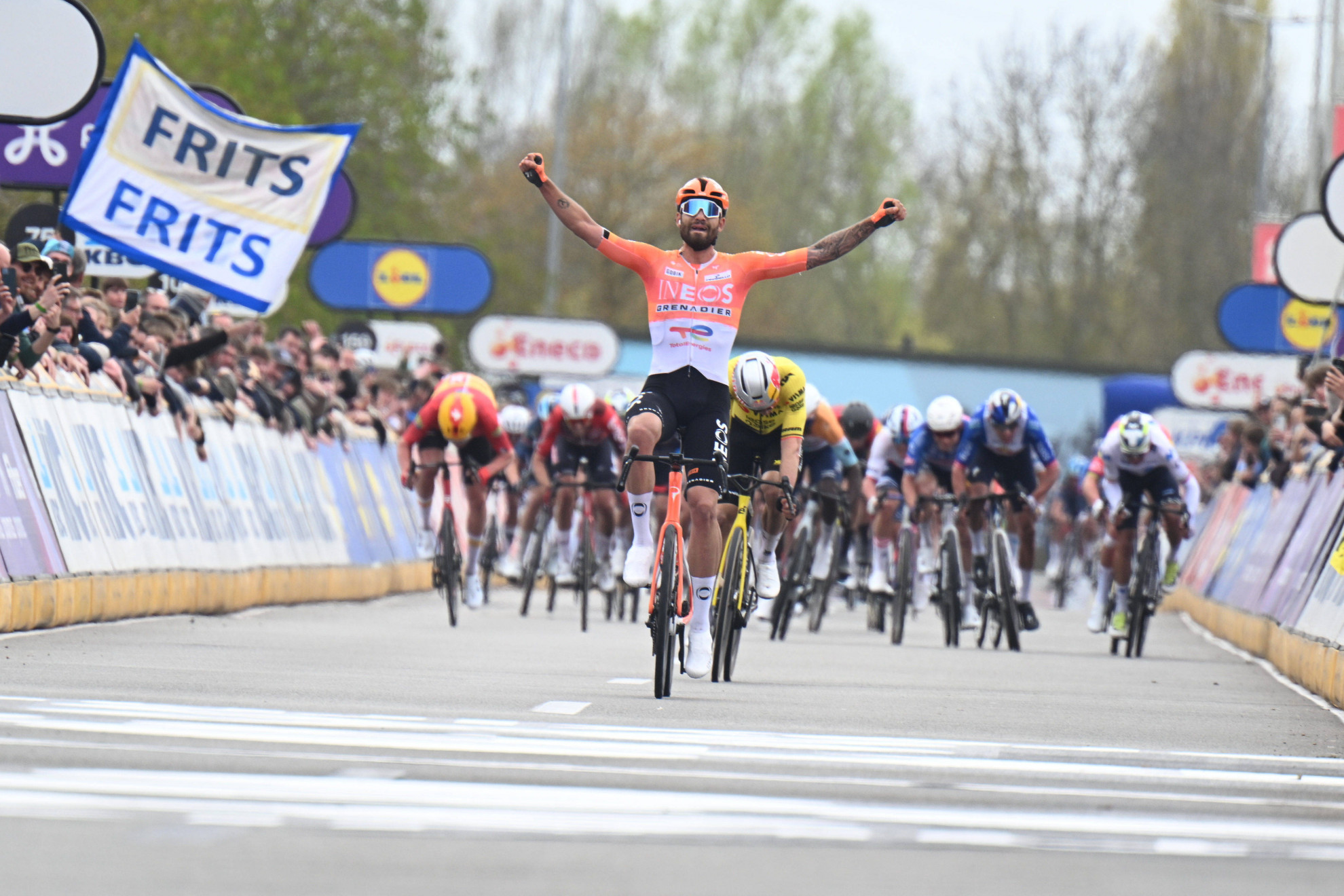 ImagoCICLISMO - Filippo Ganna si è preso la gara “Attraverso le Fiandre”, antipasto al Giro delle Fiandre (in programma a Pasqua). L’italiano ha battuto in volata il belga Wout van Aert e il norvegese Soren Waerenskjold.
