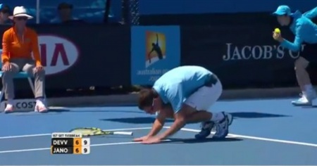 Beh, dimenticatevelo perché lo Janowicz visto ieri notte nel tie-break del primo set del secondo turno degli Australian Open è lontano anni luce da quello di Parigi.. oh almeno sul momento. Con la possibilità di conquistare il primo set contro lo sconosciuto indiano Devvarman, una chiamata dubbia gli cancella il set point, e il polacco certo non la prende bene: perde le staffe, perde il set ma alla fine vincerà l’incontro…