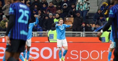 La rete di Dimarco ha ulteriormente motivato gli uomini di Chivu, che nei successivi quindici minuti hanno imperversato nella metà campo partenopea. Totalmente contro l'andamento del gioco - al 26esimo - dal nulla è arrivato il pareggio del Napoli con McTominay, che lasciato libero di calciare a pochi metri dalla porta ha tramutato in oro un assist al bacio di Elmas. Lo scozzese ci ha poi riprovato qualche minuto più tardi, ma Sommer ha bloccato a terra. Dalla mezz'ora la partita, giocata a ritmo sostenuto da entrambe le squadre, è diventata più equilibrata, benché i padroni di casa abbiano continuato a mantenere una certa predominanza nel possesso palla. Di (nitide) occasioni da rete, però, non ne sono più arrivate. E sul risultato di 1-1 si è andati alla pausa.