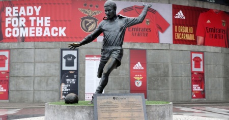 La statua dedicata all'ex campione portoghese davanti l'Estádio da Luz di Lisbona.