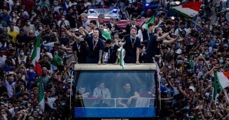 Il day-after dell’Europeo ha spaccato a metà il Vecchio continente. Anche nei paesi “neutrali” si è infatti disquisito sul tonfo inglese e sulla gioia italiana. Ma se, insulti e polemiche a sfondo razziale a parte, per quanto riguarda la selezione dei Tre Leoni ci si è concentrati soprattutto su quanto successo nei rigori, degli azzurri si è invece raccontato tutto il torneo. Un campionato affrontato con personalità, gioco e coraggio, la cui vittoria ha riportato il sorriso in strade e piazze del Belpaese, quasi fosse di buon auspicio per il futuro prossimo. Come al solito, anzi più del solito, il trionfo sportivo è stato “usato” per far passare un messaggio. Invece che sinonimo di potenza, grandezza, infallibilità; in questo caso però la coppa è stata accostata alla speranza. Alla riuscita (di qualcosa che sembra difficilissimo). Mancini e i suoi ragazzi sono diventati i simboli di una ripartenza che in molti in Italia vedevano, vedono, come appunto difficilissima. Per questo sono immediatamente finiti al Quirinale, da Sergio Mattarella, e a Palazzo Chigi, da Mario Draghi. Giusto? Comprensibile, piuttosto. Nel ruolo “istituzionale”, comunque, gli azzurri si sono calati dopo una notte insonne, fatta di celebrazioni e feste, più o meno intime. Perché in fondo di ragazzi si tratta: qualcuno li vorrebbe eroi, ma loro hanno “solo” giocato, coronando un sogno che di sicuro coltivavano fin da bambini.