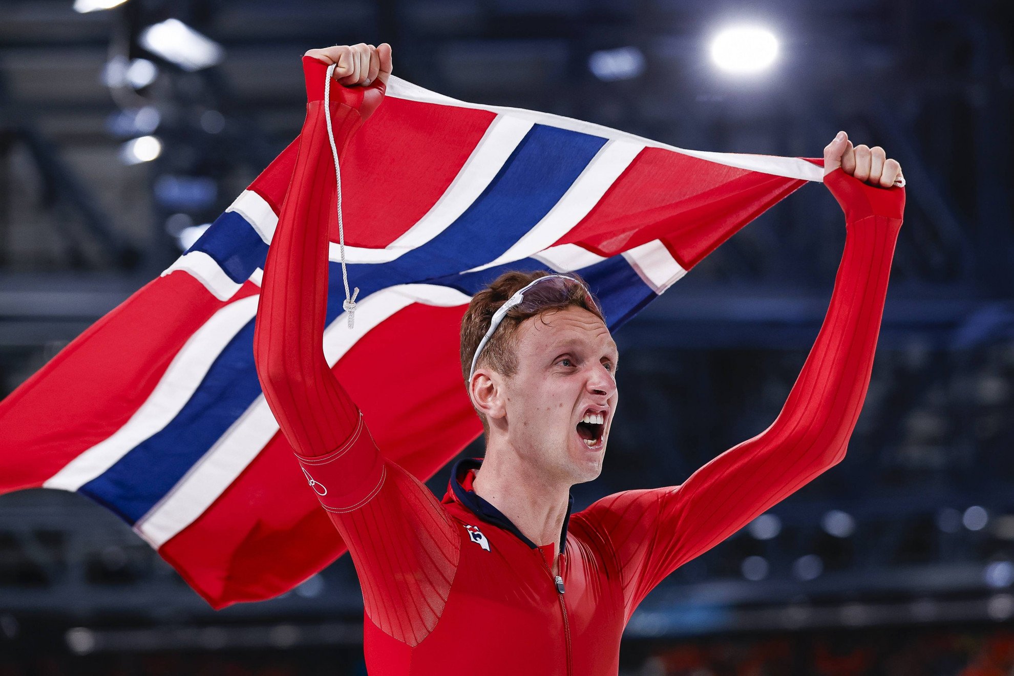 ImagoIl pattinatore norvegese Eitrem festeggia la vittoria nei 5'000 metri.PATTINAGGIO VELOCITÀ - Nel pattinaggio di velocità il norvegese Sander Eitrem si è messo al collo l'oro nei 5'000 metri stampando nel contempo il nuovo record olimpico con il crono di 6'03"95. Sul podio con lo scandinavo sono saliti anche il ceco Metoděj Jílek (argento) e l'italiano Riccardo Lorello (bronzo).