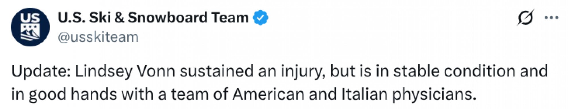 Silenzio irreale - Dopo la caduta di Vonn sulla linea del traguardo è calato un silenzio irreale. Lo choc, soprattutto tra amici e famigliari, era palpabile. «È sicuramente l’ultima cosa che avremmo voluto vedere», ha precisato la sorella Karin Kildow. «Lindsey dà sempre il 110%. E nello sci a volte queste cose possono succedere». Dello stesso parere anche il presidente della FIS Johan Eliasch: «È triste che sia successo proprio a lei dopo il suo incredibile ritorno. Ma questo è lo sci agonistico. E purtroppo simili incidenti possono capitare».