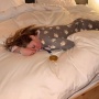 Stremata dopo gli sforzi e le emozioni olimpiche, la nordamericana si è concessa l'ennesimo pisolino.