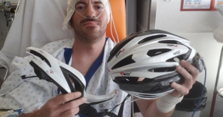 MORGES - Ventuno costole, quattro vertebre, due scapole e una clavicola rotta, un doppio pneumotorace ed un orecchio parzialmente strappato. È questo il pesante bilancio medico di Nicolas Hemmer, sfortunato protagonista di un incidente in bicicletta avvenuto lo scorso 1° maggio nelle vicinanze di Morges. «Grazie al mio casco però sono ancora vivo».