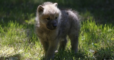 Un piccolo lupacchiotto artico scorrazza per lo zoo di Servion