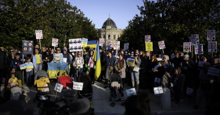 GINEVRA - A esattamente un mese dall'aggressione militare russa contro l'Ucraina, oltre 200 manifestanti, principalmente ucraini, hanno protestato oggi contro la guerra davanti alla missione russa a Ginevra. Hanno in particolare denunciato il massacr...