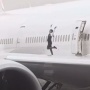 Il ballo della hostess sulle ali dell'aereo