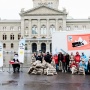 Con un'azione su Piazza federale, Pro Alp richiama l'attenzione su quanto poco paghi il settore dei trasporti su gomma in Svizzera. «È uno scandalo».