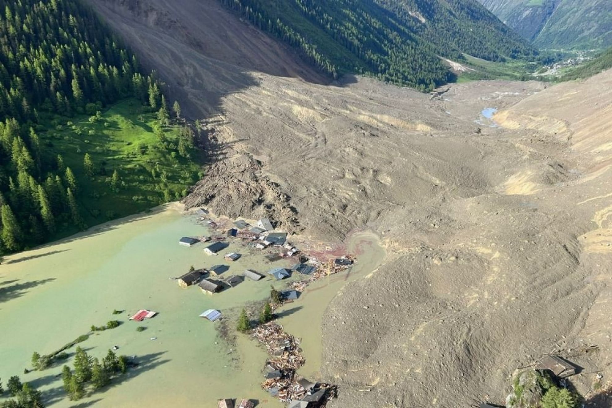 Gran parte del ghiacciaio sopra Blatten (Vallese) si stacca. Masse di ghiaccio e detriti seppelliscono la maggior parte del villaggio di Blatten e della frazione di Ried. Una persona muore.