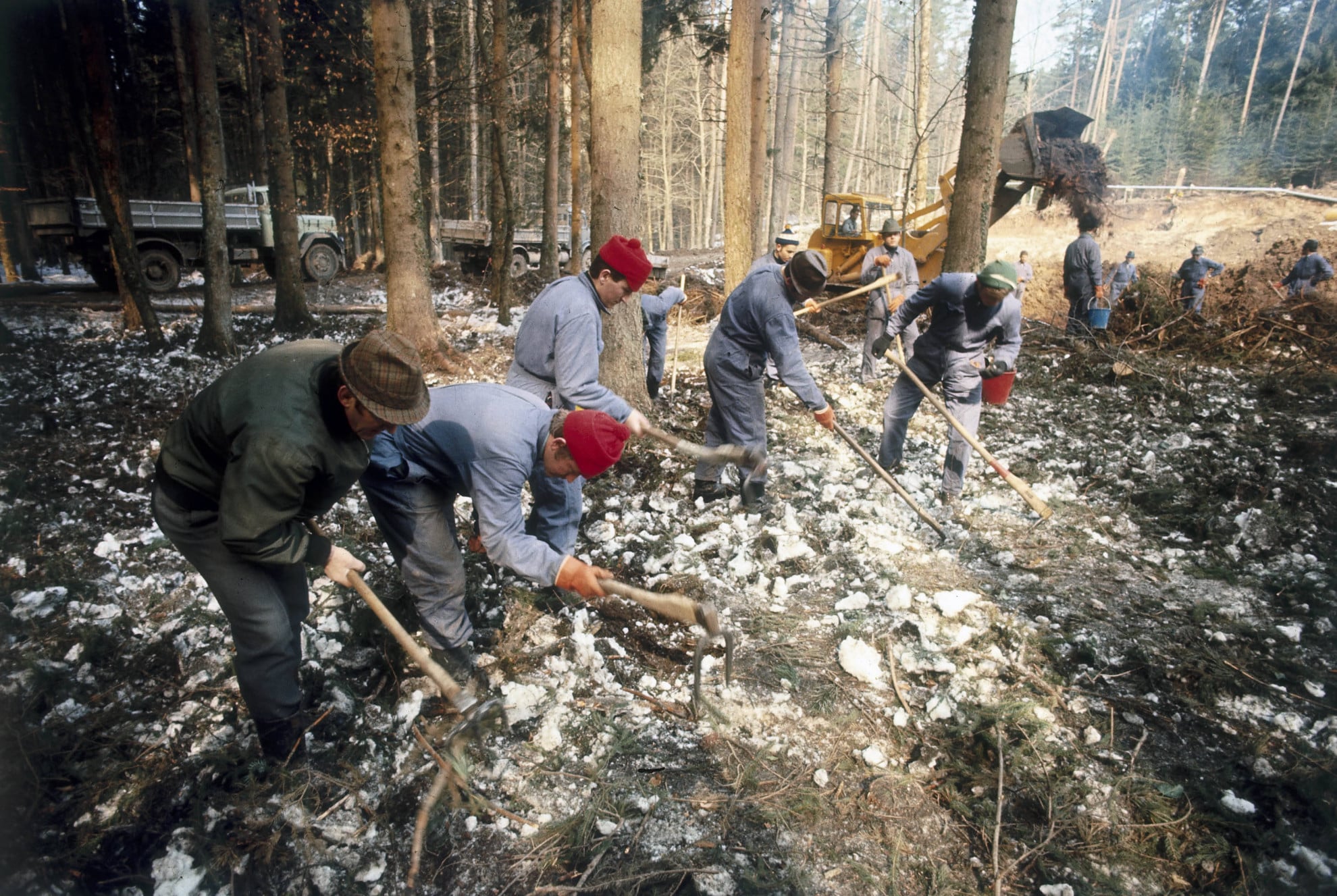 IMAGOUomini che lavorano dopo lo schianto dell'aereo di Würenligen30 agosto 1965 - Una frana di ghiaccio seppellisce gli operai della diga di Mattmark