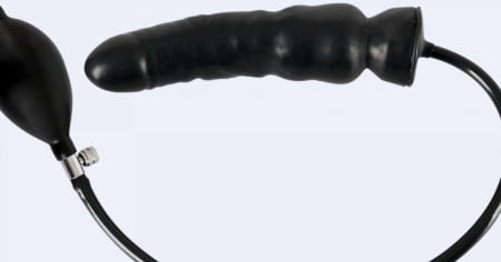 Si tratta di un frustino con maniglia e dildo gonfiabile in lattice