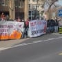 Poi però la situazione è precipitata. Al corteo si sono aggiunti anche attivisti filo-palestinesi e iraniani e decine di persone incappucciate. La polizia ha reso noto che «si sono registrati anche degli atti di danneggiamento», con i manifestanti che hanno imbrattato le facciate di diversi edifici lungo il percorso.