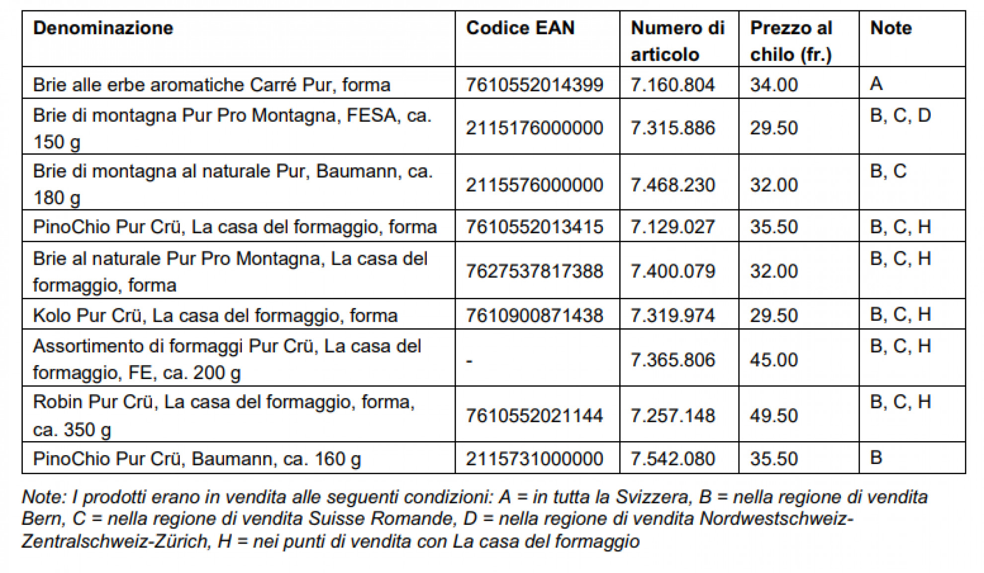 Richiamati vari formaggi del caseificio Landbrügg. Solo uno di questi era venduto in tutta la Svizzera, si veda la tabella. La vendita degli articoli è stata già bloccata.