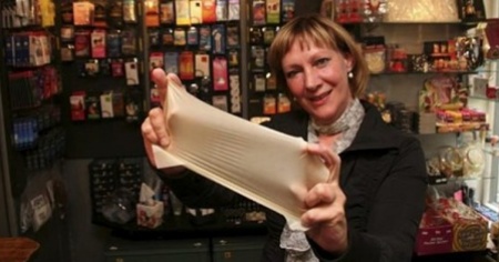 20min.ch è andata a rendere visita al negozio di preservativi Condomeria, che si trova a Niederdorf, quartiere della città vecchia di Zurigo, dove si vende questa specie di fazzoletto estensibile in lattice in pacchetti da 8 pezzi per sedici franchi.