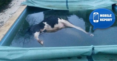 Trovano una mucca morta in piscina