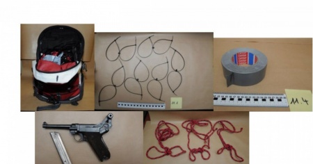 La conferenza stampa si è conclusa poco dopo le 15.20. La polizia ha trovato una pistola in uno zainetto dell'uomo, rinvenuto in occasione della perquisizione avvenuta ieri nel suo appartamento. Oltre all'arma, nello zainetto vi erano dei laccetti e del nastro adesivo. (vedi foto)