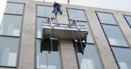 I due lavavetri si trovavano sulla facciata dell'edificio della Europaallee quando il montacarichi è rimasto bloccato