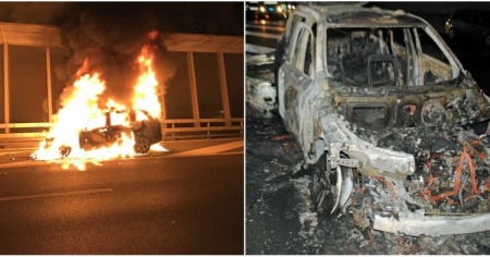 Auto divorata dalla fiamme sull'A2