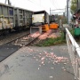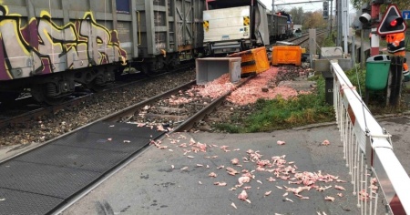 A seguito della collisione, il furgone è stato spinto a diversi metri di distanza. Questo era pieno di scarti animali provenienti da un macello, che si sono riversati sui binari.