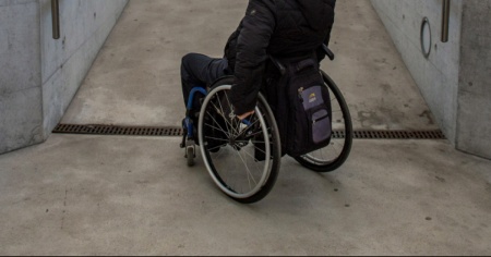 Cade dalla sedia a rotelle e si ferisce