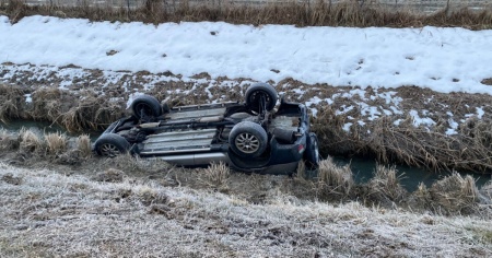 Il veicolo è stato trovato ribaltato in un canale.