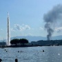 GINEVRA - Un vasto incendio, visibile a decine di chilometri di distanza, sta oscurando il cielo a Ginevra.
