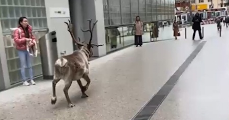 ZURIGO - Una renna a passeggio con tutta calma nelle strade del centro di Zurigo. Una situazione decisamente curiosa, che ha suscitato i commenti divertiti dei passanti, richiamati dal suono dei campanelli dell'animale.