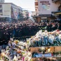Fiori, candele e peluche, una folla immensa rende omaggio alle vittime