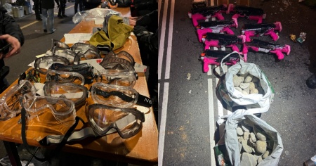 La polizia ha fatto ricorso allo spray al peperoncino, sette agenti sono stati abbagliati da un laser