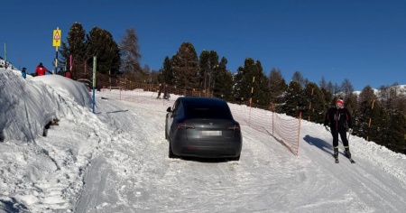 Con la Tesla sulla pista da sci