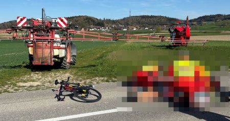 Secondo le prime ricostruzioni della Polizia cantonale di Soletta, l’uomo si è scontrato contro una barra di irrorazione estesa collegata a un trattore. Il dispositivo, utilizzato per la protezione delle colture, durante una manovra sarebbe finito sulla carreggiata proprio mentre sopraggiungeva il ciclista.