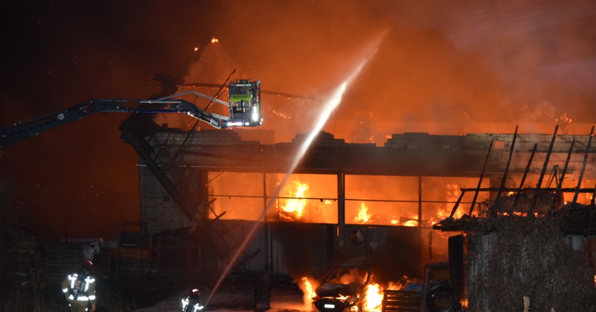 Capannone distrutto dalle fiamme a Mairengo