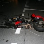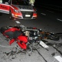 Violento l’impatto che ha sbalzato il centauro prima in aria e poi pesantemente caduto a terra.