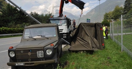 BIASCA - Attorno alle ore 15.00 sulla strada cantonale che porta da Biasca alla Valle di Blenio, all'intersezione di Biasca in zona Vallone, si è verificato un incidente con un veicolo militare Puch.