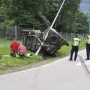 Il guidatore, che circolava da Acquarossa in direzione Biasca, giunto all'intersezione in zona Vallone, per motivi che la polizia dovrà appurare, ha perso la padronanza del veicolo urtando dapprima un palo della luce alla sua destra e invadendo poi la corsia opposta dove si è accartocciato con il suo rimorchio contro un altro palo della luce.