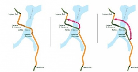 Nuova galleria tra Grancia e Maroggia - Prevede l'attraversamento del lago di Lugano mediante una galleria sul fondo, a nord della diga di Melide nonché l'aggiramento, mediante un nuovo tracciato, delle gallerie San Salvatore e San Nicolao.