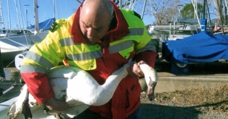 LUGANO - Soccorsa dalla Spab, é morta dal veterinario. "Rosellina", il cigno reale era in agonia alla foce del Cassarate.