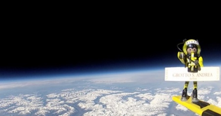 Due appassionati ripetono l'esperimento di due giovani canadesi: con un marchingegno fatto in caso mandano una fotocamera e un pupazzetto a 25mila metri di quota