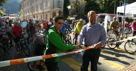 Il taglio del nastro da parte del Consigliere di Stato Norman Gobbi e del municipale Simone Gianini, avvenuto puntuale alle 10.00 di questa mattina, ha dato il via ad una manifestazione che prevede un percorso lungo 50 chilometri che si snoda tra la Capitale e Locarno toccando ben 12 comuni.