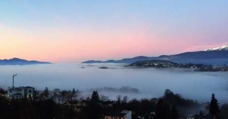 Un mare di nebbia avvolge le rive del Ceresio