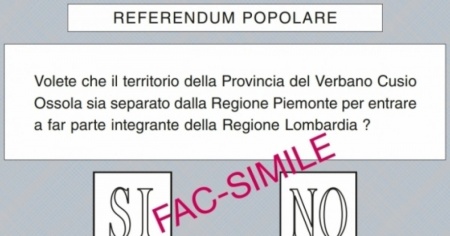 Il quorum è fissato al 50% più uno. Non si registrano problemi nei seggi dei 76 comuni del VCO interessati dalla consultazione. Si vota sino alle ore 23.