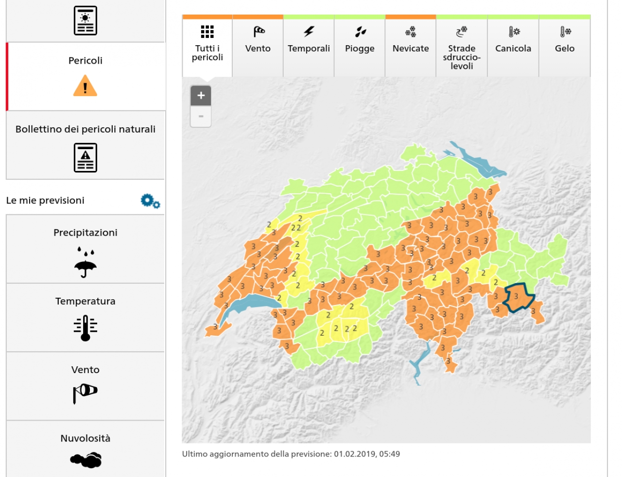 Screenshot Meteo Svizzera