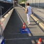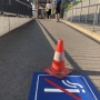 Questa mattina è stato dipinto il simbolo che vieta ai fumatori di accendersi una sigaretta nell'area della stazione